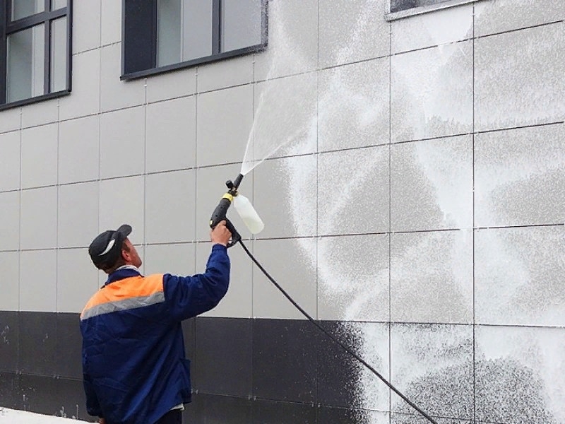 Глубокая химическая мойка зданий с использованием кислотных моющих средств | кв.м | 10 | 70 | 80 |